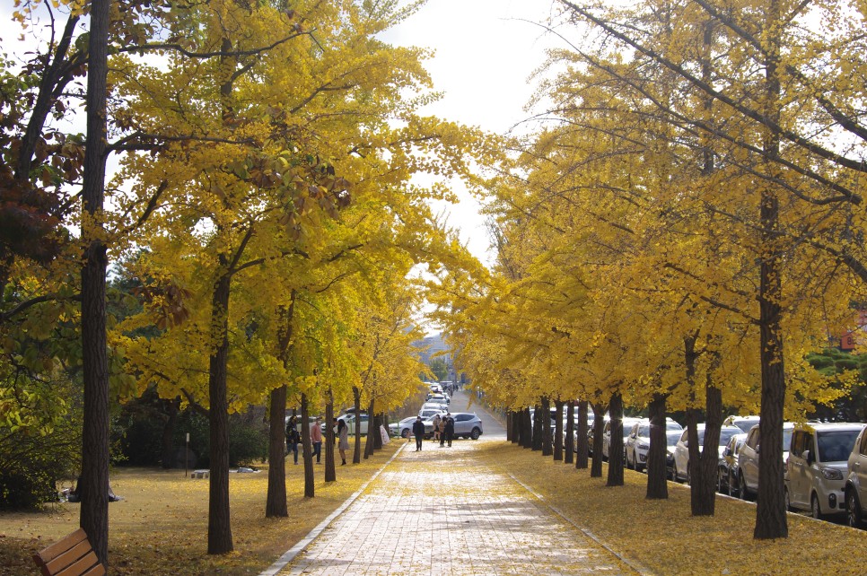 저는 오후에 이곳에 도착을 한 관계로 들어오는 길 갓길에 주차를 하고 이 길을 따라 걸어오고 있습니다. 은행나무의 노란 색감을 느끼시길 원하신다면 이 길을 먼저 걸어보시는 것을 추천드립니다.