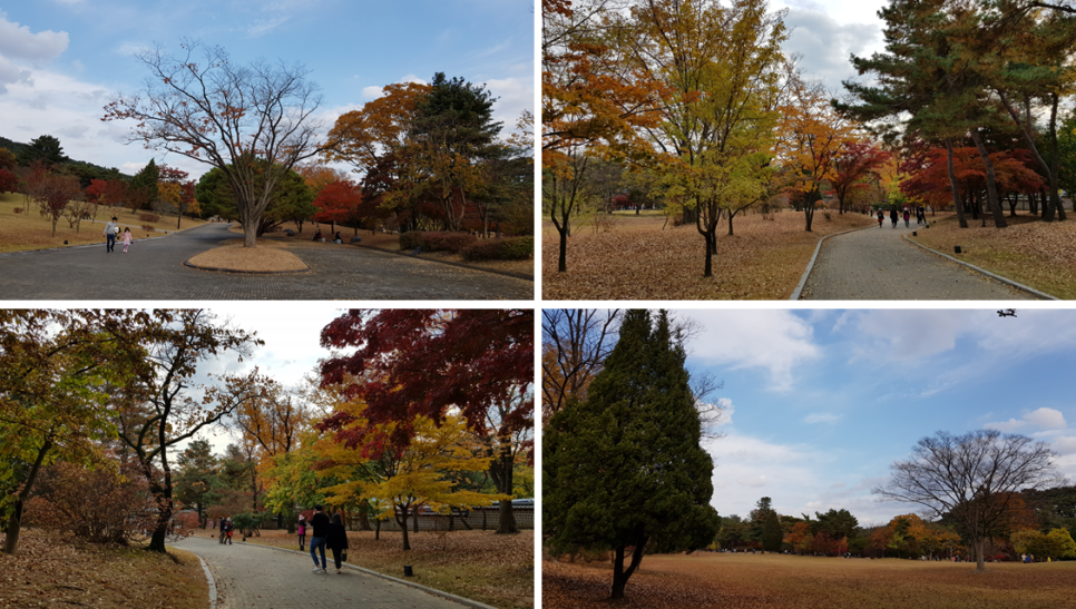 좌측에 보이는 잔디광장을 바라보아도 단풍이 멋지게 들었습니다.