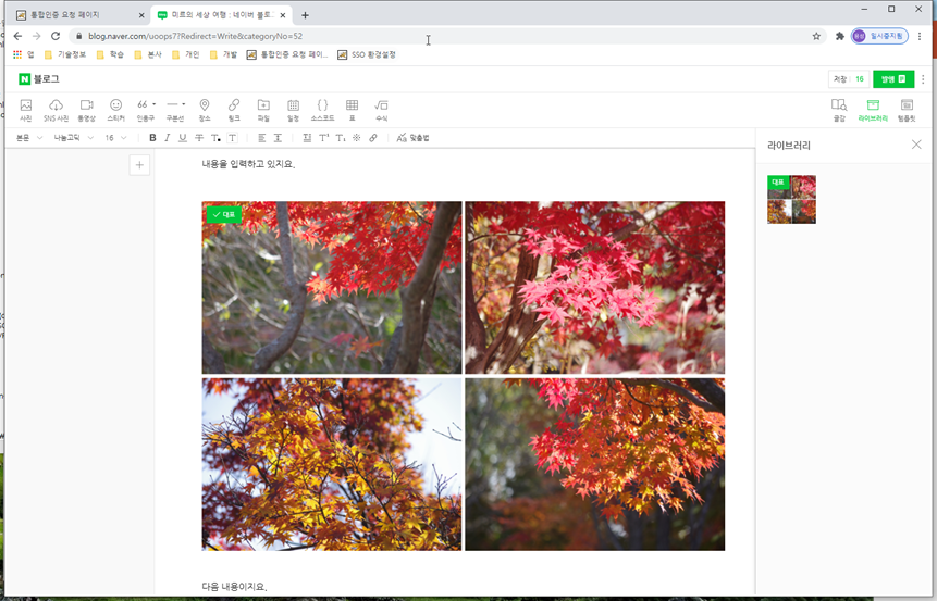 4. 배치가 끝나면 이미지 전체를 선택(Ctrl-A)하고 복사(Ctrl-C)를 수행합니다. 그리고 네이버 에디터 본문에 붙여넣기(Ctrl-V)를 하면 끝이지요.