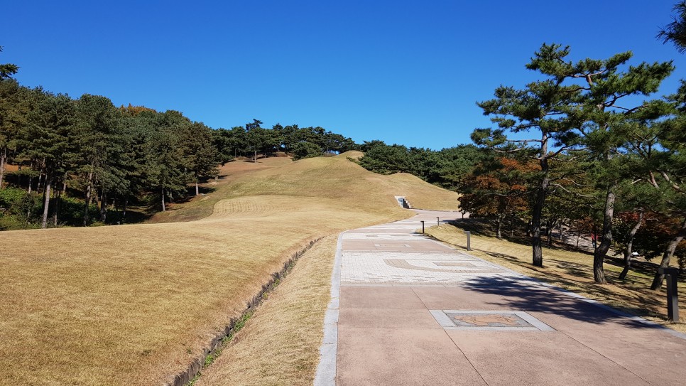 이제 전시관을 나가는데 나가는 길은 옆에 있습니다. 그리고 조금 길을 따라 올라가면 고분들이 보이는데 사실 이 아래쪽에서는 잘 보이지는 않습니다. 무덤 위로 올라갈 수는 없지요....ㅎ