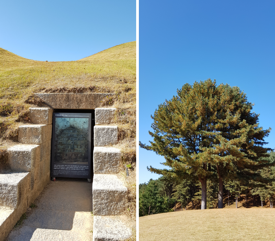 지금까지 구경한 송산리고분군의 모습을 멀리서 담아봤는데 고분군이 잘 보이지가 않아서 조금 아쉽습니다.
