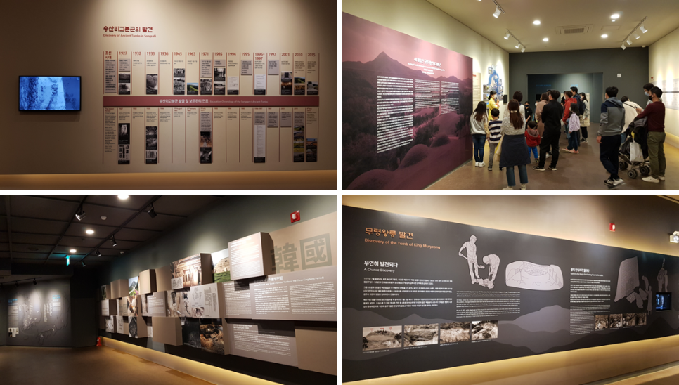 전시관 내부는 송산리고분군의 역사와 특히 무령왕릉의 발견 등에 대한 설명 전시물이 있고요. 안내자의 설명을 들을 수도 있더라구요. 시간만 잘 맞추면 들으시면 좋을 것 같습니다.