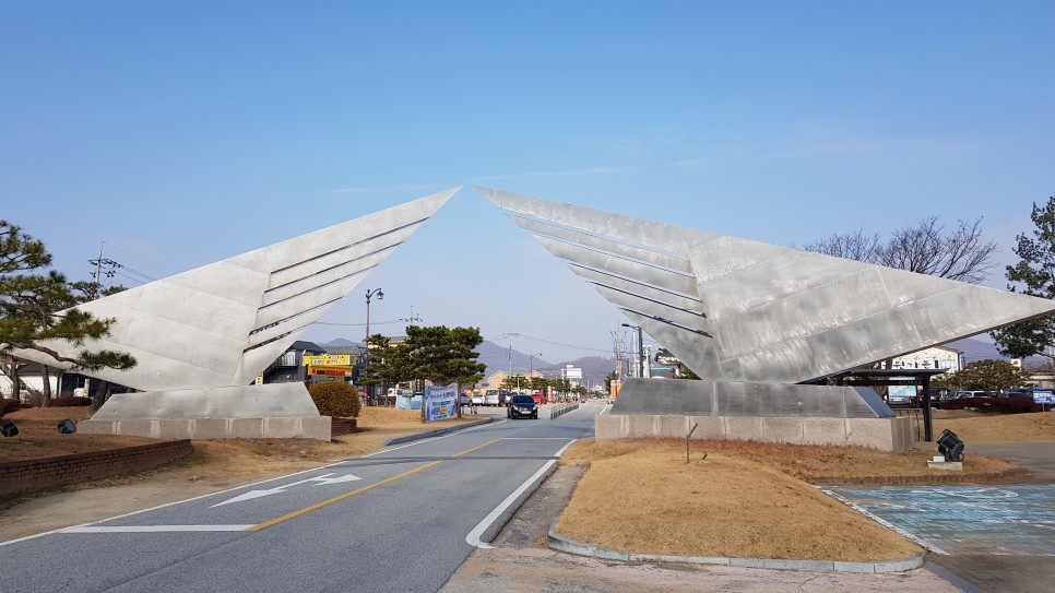 이제 낮의 모습을 구경할 차례입니다. 밤에 갔던 경로 반대로 움직여 보도록 하겠습니다. 먼저 저 조형물은 이곳으로 들어오는 길에 있는 조형물인데 멋있어서 찍어봤구요.