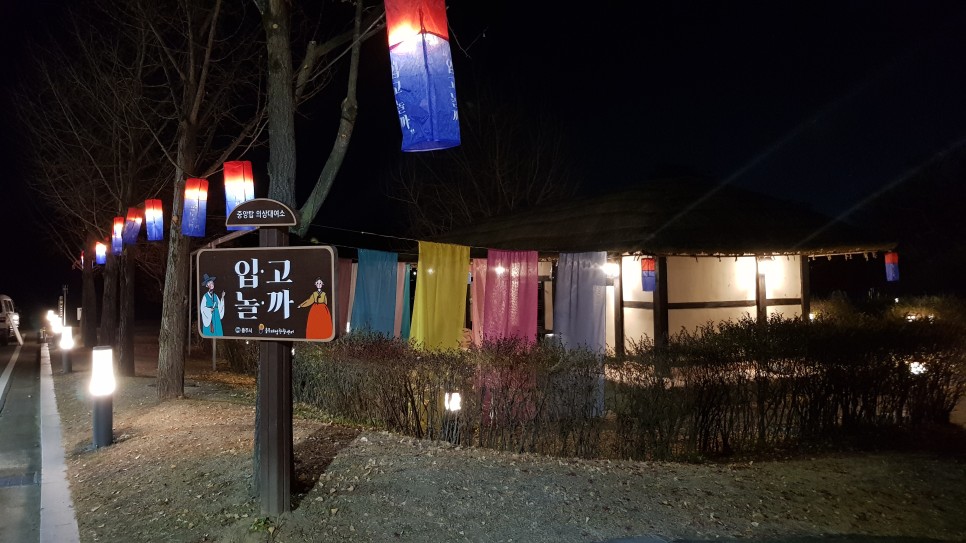 그리고 그 앞에 전통 건물처럼 생긴 게 있는데 "입고놀까?"라는 문구가 보이네요. 의상대여소라고 하구요. 한복을 대여할 수 있나 봅니다.