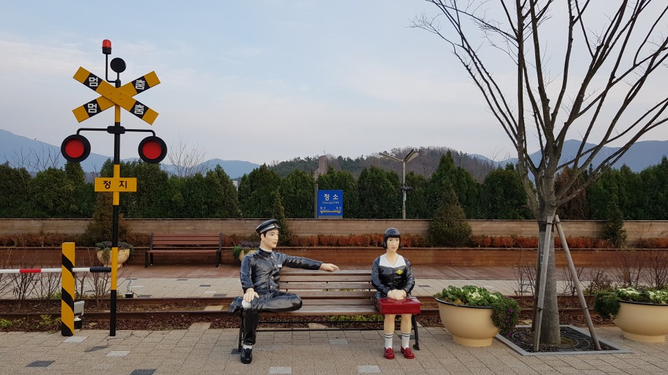 철로를 주제로 한 꽃밭과 쉼터도 있구요.