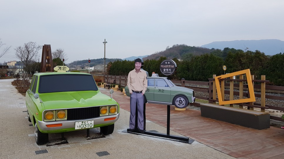 그리고 여기에 택시 조형물과 사람 얼굴이 있는데 택시운전사라는 영화에 출연한 송강호님의 얼굴로 보이네요.