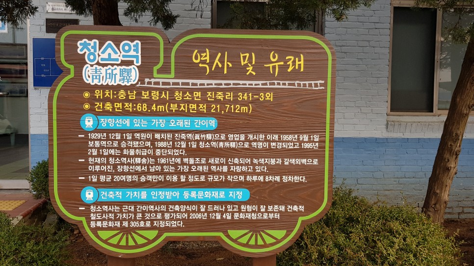보령 청소역은 보령 장항선의 간이역 중에서 가장 역사가 오래된 역으로 가 보시면 역사가 아주 작습니다. 보면 어이구야, 하는 탄성이 저절로 나올 정도로 작은 실내가 있구요, 주변에 조형물들을 만들어 둔 공간이 특별히 있어서 사진을 찍기에 좋은 곳이라고 합니다. 그런데 이곳은 폐역은 아닌 듯한데 보령에서 가장 오래된 간이역이라고 해서 유명한데 또한 택시운전사라는 영화가 촬영이 되면서 더 유명해진 곳이지요.