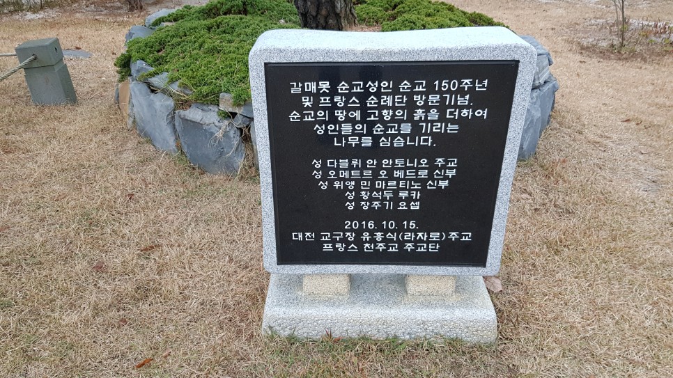 그리고 프랑스 천주교 주교단의 방문 기념으로 심은 나무도 있지요.