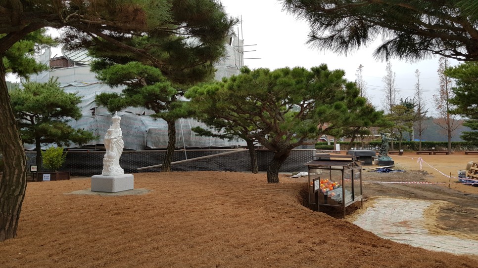 공사가 진행되고 있는 건물 앞에도 조형물이 보이네요.