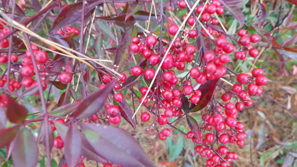 내려가는 길에 카페도 보이고 빨간 남천나무 열매도 있어 찍어보았습니다.