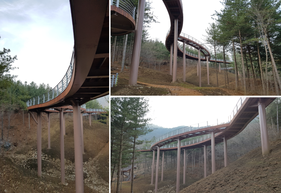 이제 반대편으로 내려가서 다시 돌아나가고 있구요. 전망데크의 모습을 여기저기에서 찍어봅니다. 잘 만들어진 구조물 같아요.