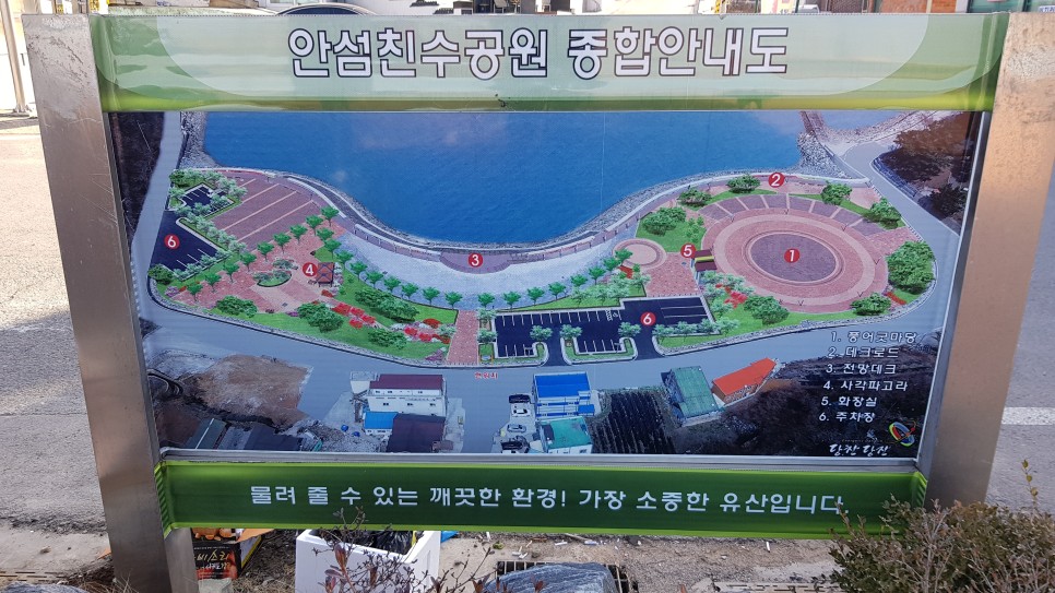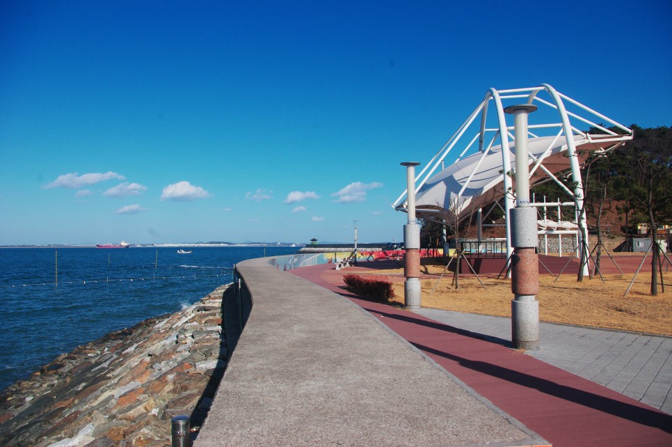 바닷가에 쭉 만들어져 있는 데크 로드를 걸어서 바다를 구경하면 기분이 가장 좋은 곳이지요. 공원이 이쁜 색상으로 꾸며져 있어 허름한 어촌의 작은 공원의 느낌이 전혀 없습니다. 바닥도 깨끗하고 전망데크도 만들어져 있어서 천천히 산책을 하면서 바다를 구경하는 재미가 좋은 곳입니다.