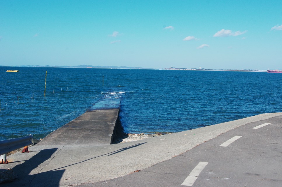 가는 길에 아래쪽으로 내려갈 수 있는 곳이 있는데 이곳에는 배를 대는 곳이지요. 저번에 왔을 때는 물이 많이 빠진 상태라 주변의 갯벌이 많이 보였는데 오늘은 물이 많이 들어와서 풍성한 바다를 보는 듯합니다.
