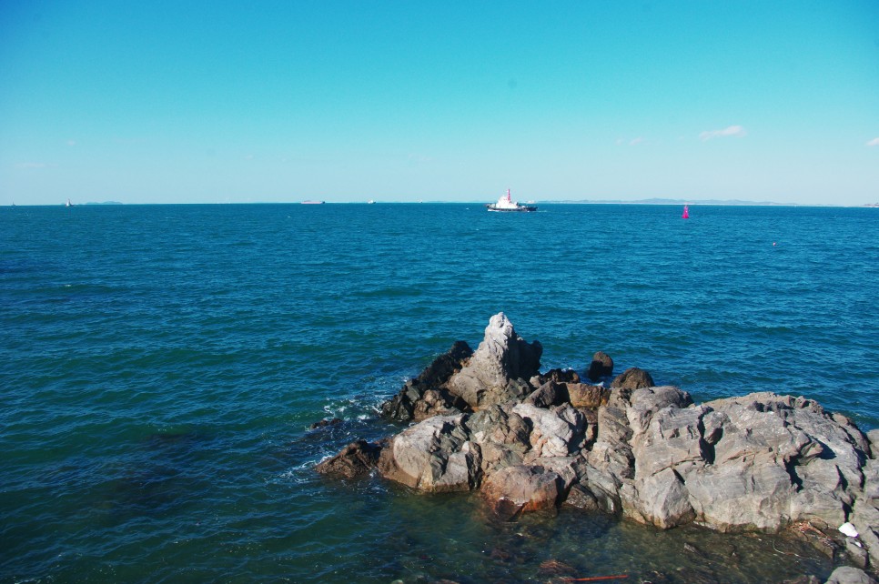 마침 저기에 배가 한대 물길을 가르며 지나가고 있네요. 파란 바다 위에 하얀 배가 지나가니 너무 운치가 있는 것 같아요.
