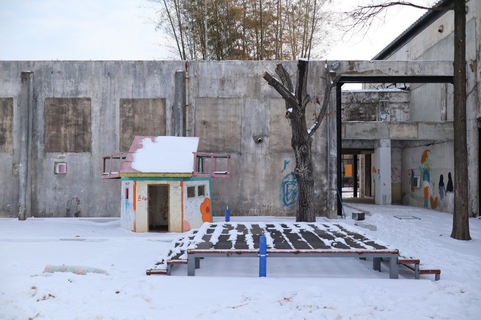 심지어 어린이 놀이 시설처럼 보이는 것도 기존의 공장 잔해들을 이용했나 봅니다.