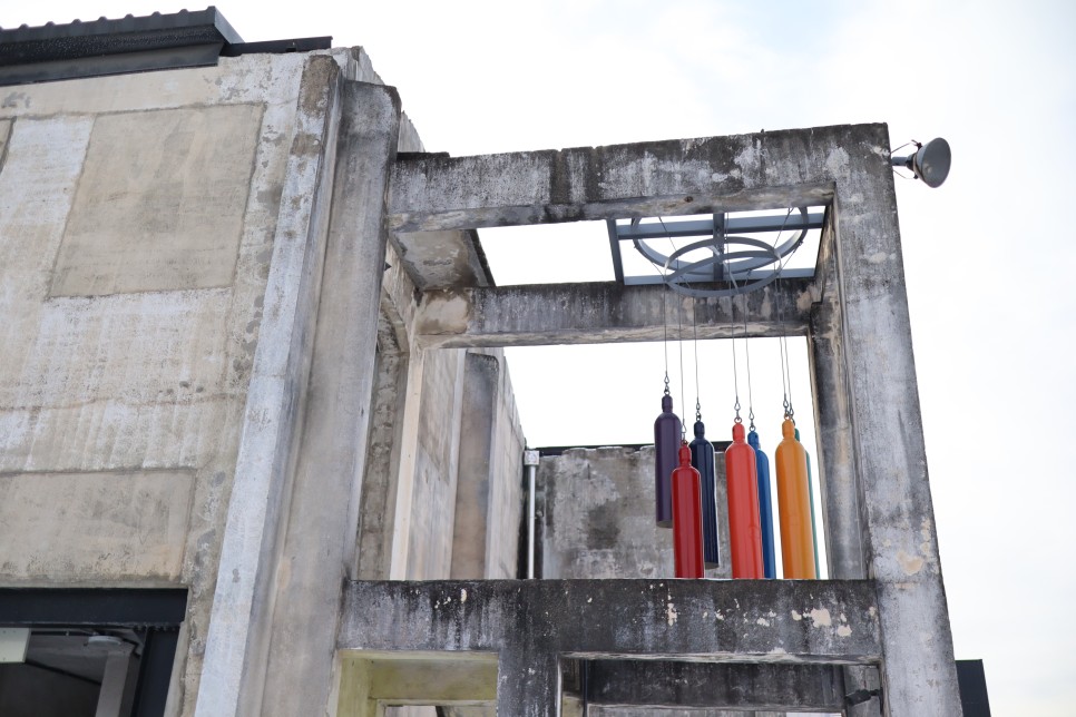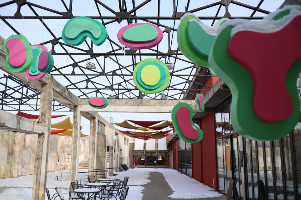 아마도 예술가들의 작품들을 전시해 둔 모양인데 오래된 폐 공장의 모습과 살짝 어울리지 않는 듯하면서도 어딘가 색감이나 모양 등이 눈에 잘 들어오는 것이 마음에 드는 것 같아요.