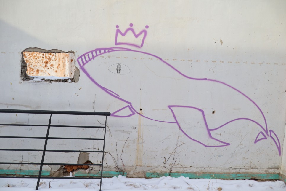 그리고 허물어질 듯한 벽에도 낙서 같은 그림들이 보이는데 이전부터 있었던 것인지 이것도 작품인지는 모르겠습니다. 어느 벽화마을의 일부를 보는 듯하네요.