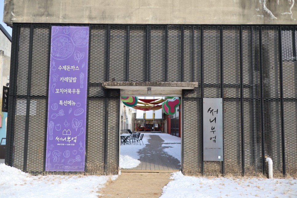 저는 반시계 방향으로 실외만 구경을 하고 왔습니다. 제일 먼저 눈에 들어온 건물이 여기인데 써니부엌이라고 이름표가 보입니다. 아마도 식당인듯 한데 제가 방문했을 때는 개방을 안 하고 있었지요. 잠시 안으로 들어가 보도록 하겠습니다.