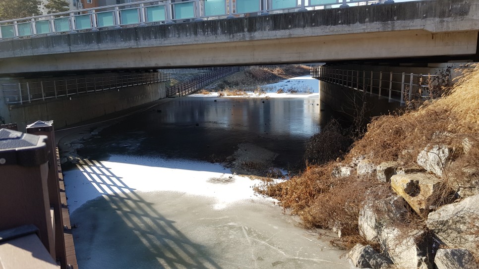 그리고 이곳에는 하천을 가로지르는 나무 데크 산책로도 있으니 이용을 하시면 되지만 현재는 겨울이라 별로 가고 싶은 생각은 들지가 않네요.
