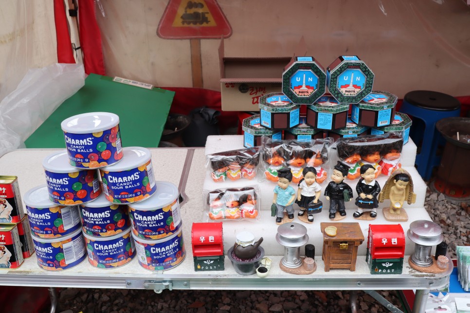 이제부터 철로를 걸으면서 구경을 하게 되는데 철로를 따라서 체험이나 옛날에 많이 판매를 하던 과자나 물건들 위주로 구매가 가능하니 이용을 하시면 됩니다. 특히 가게들이 옛 추억을 되돌아볼 수 있는 이런 그림이나 사진들이 많이 보여서 구경하는 재미가 있더라구요. "그때 그시절!" 이라는 문구가 모든 것을 말해주는 듯합니다.
