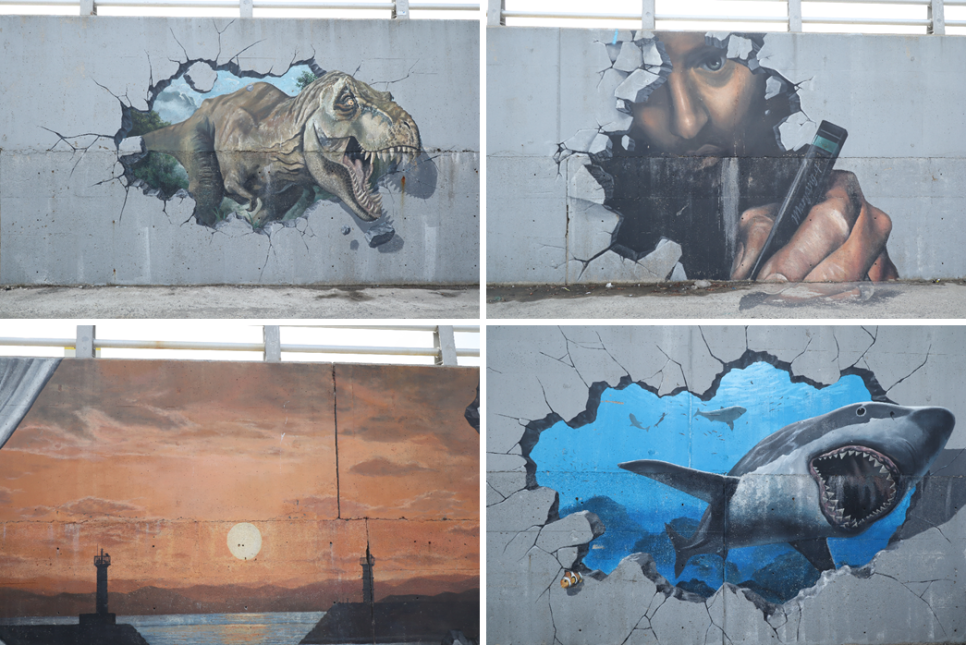 그리고 방파제 아래에는 이렇게 멋진 그림들도 많이 그려져 있어서 조금은 우중충한 느낌의 포구에 생기를 불어 넣는 듯했지요.