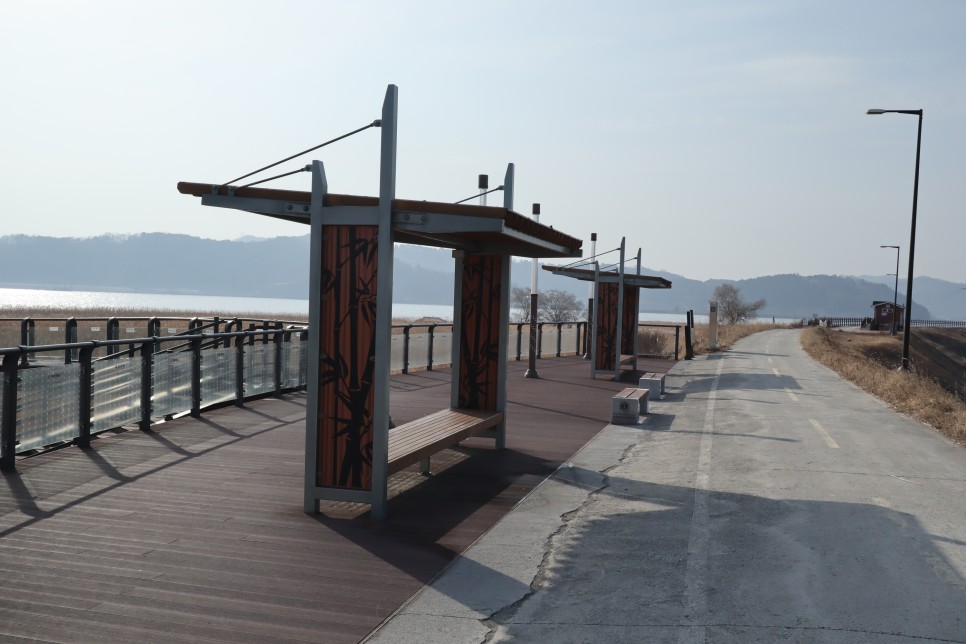 먼저 길가에 이런 쉼터가 있으니 잠시 쉬어 가면 좋겠습니다. 핑크 뮬리가 피는 계절에 가면 이곳이 북적이겠네요.