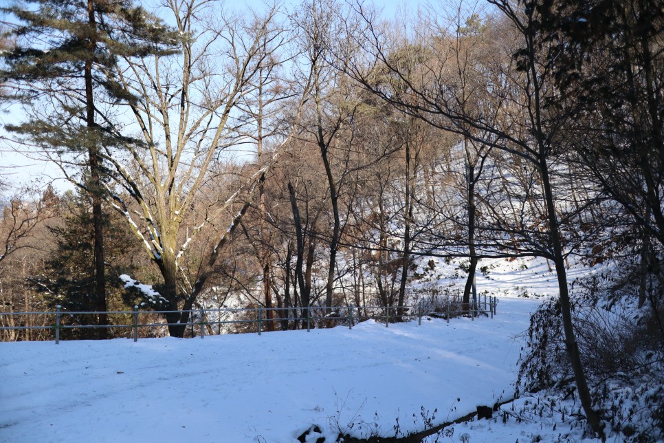 이제 위쪽으로 올라가니 일반 도로처럼 보이는 곳이 나타나네요. 이 길을 따라 걸으면서 눈 구경을 하도록 하겠습니다.