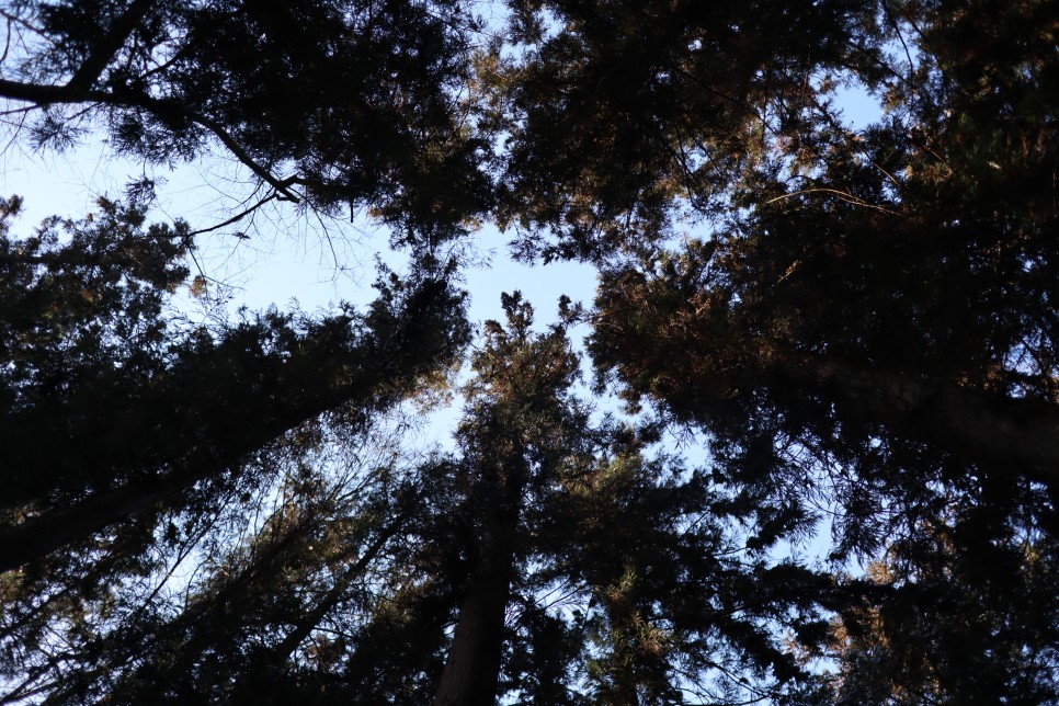 일단 삼나무들이 빼곡히 자라고 있는 숲의 모습을 한번 찍어봤습니다. 멀리서 사진을 찍을 만한 공간이 없어서 아무리 해도 이 정도밖에 사진에 나오지가 않네요.