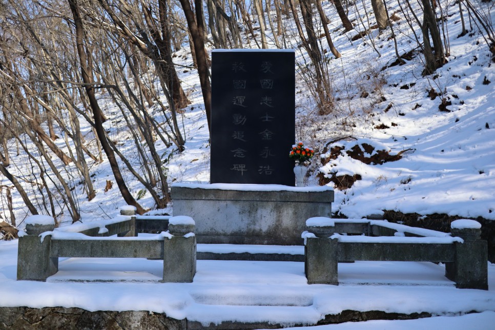 이쪽 길을 가다 보니 비석을 하나 만났는데 이 비석은 애국지사 김영호 구국운동 추념비라고 합니다. 김영호 선생은 전주지역에서 3.1운동을 앞장선 분이라고 하는데 20년에 이르는 망명생활 후 1943년에 죽음을 맞이했지요. 이 기념비는 1988년에 건립이 되었다고 합니다.