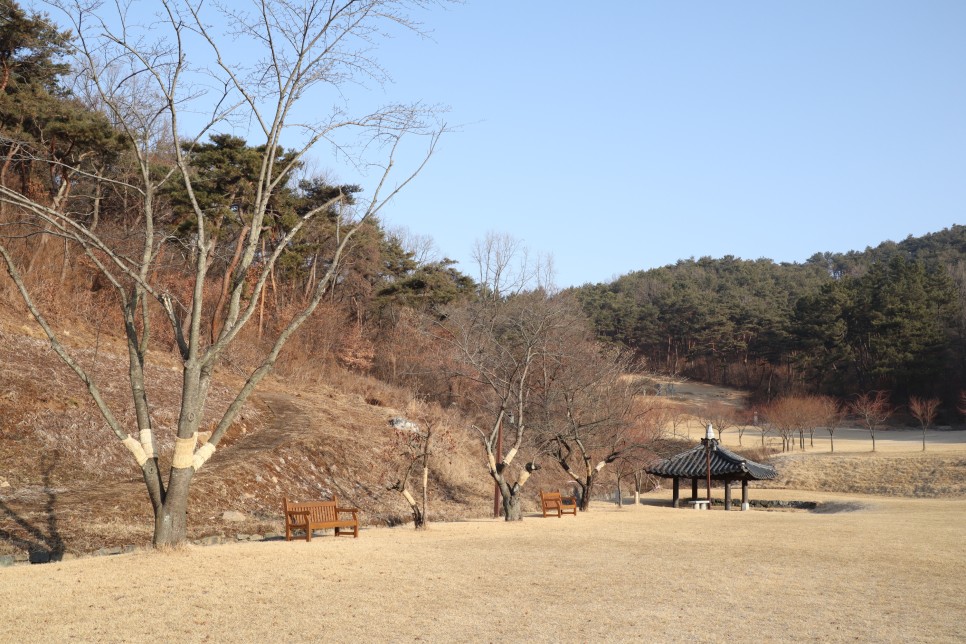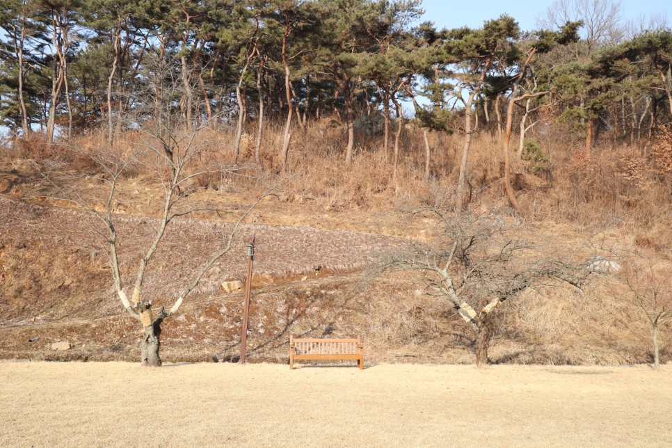주변에는 잔디들이 깔려 있고 의자들과 나무들이 함께 있어서 분위기가 좋습니다. 겨울이 아니라면 쉬기에 좋을 것 같아요.