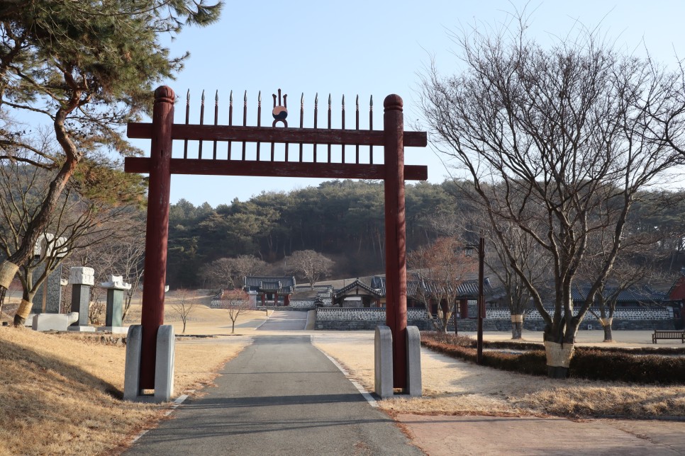 저는 이 사진만 한 장 찍고 산책로를 따라 걸어들어갑니다. 저기에 문헌서원의 입구를 알려주는 홍살문이 보입니다.
