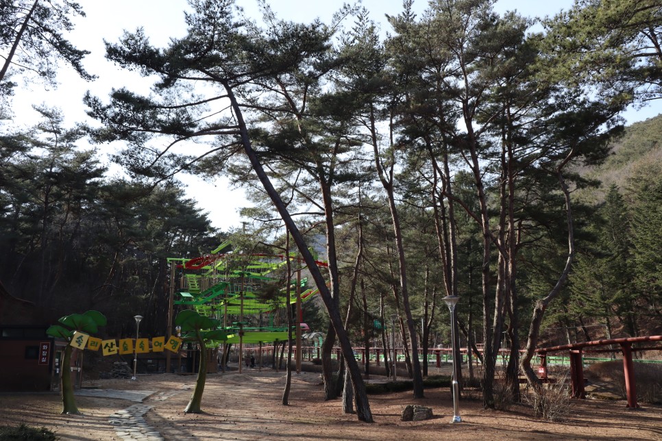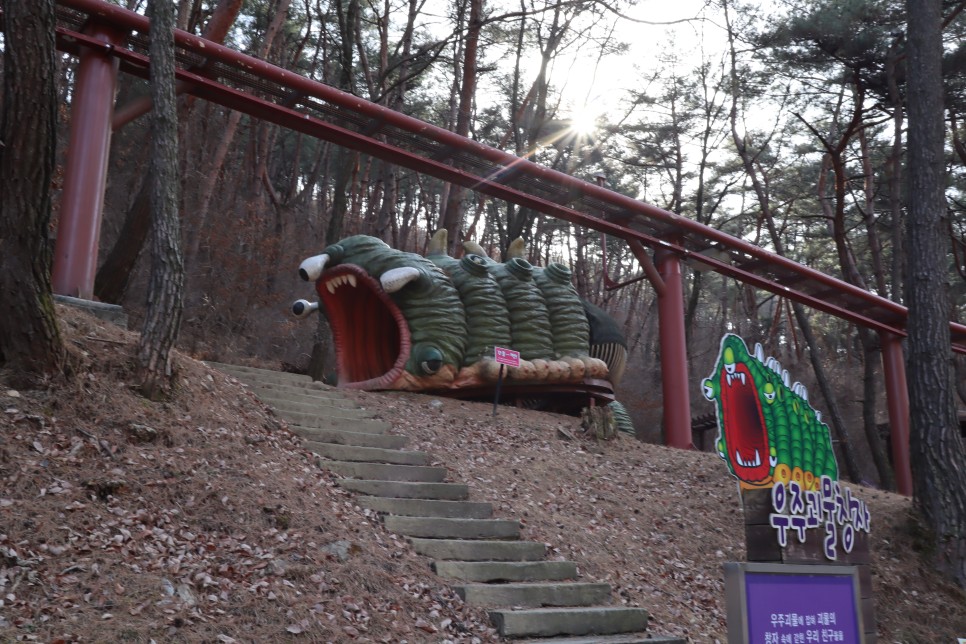 매표소 뒤로 가면 속리산숲속여행이라는 이름이 보입니다. 아이들을 위한 미로와 바위산 요새, 우주괴물 창자 등의 조형물이 있는 곳이지요. 아마도 둘리공원 대신에 만들어진 것들인 것 같아요.