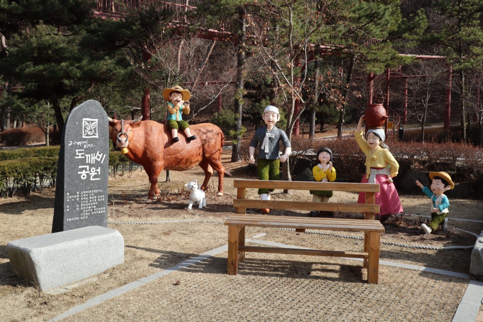 그런데 오른쪽에 보니 도깨비공원이라고 되어 있습니다. 농촌의 모습을 보여주는 것 같은 조형물들도 보이네요.