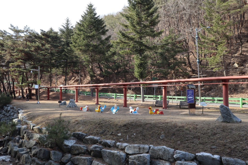 그리고 그 주변에 보이는 이 구조물들은 스카이바이크 시설인 스카이레일입니다. 매표소에서 매표를 하고 이용을 하시면 되는데 이용 시간에 제한이 있으니 매표소의 정보를 참고하시기 바랍니다.