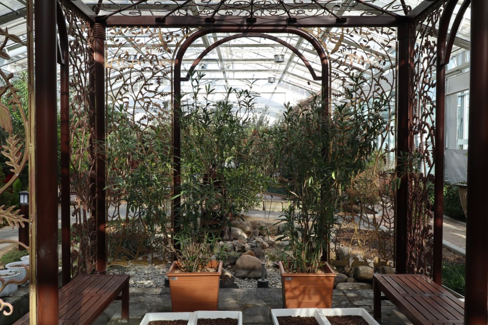 사람이 아무도 없는 관계로 식물원으로 들어가 보도록 하겠습니다. 입구에서 보는 모습인데 이 귀신머리카락 같은 식물이 요즘 어딜 가나 보이네요. 이름을 못 외우겠습니다...^.^