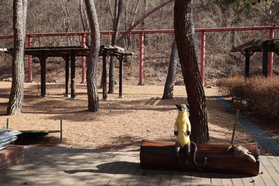 그리고 솔향공원 바로 앞쪽에 둘리공원이 있다는데 가보면 또 속리산숲속여행으로 이름이 바뀌었더라구요. 둘리 조형물들은 한쪽에 모아져서 치워져 있었구요. 도로 반대편은 속리산자생식물원이라고 하는데 식물원이라고 하기에는 조금 규모가 작습니다. 제 생각으로는 이 주변을 속리산 휴양관광지로 만들 생각으로 보이는데 전체적으로 이름들을 통일하고 통합을 할 필요가 있어 보입니다. 너무 세분화된 형태라 오히려 방문객들이 헷갈리는 곳이네요.