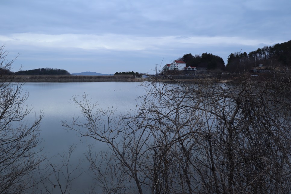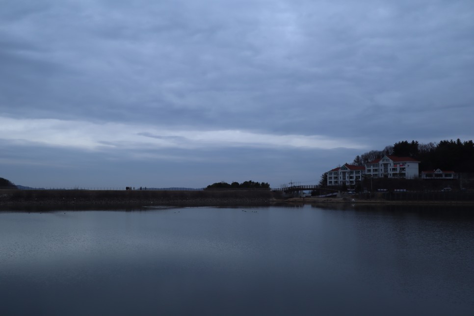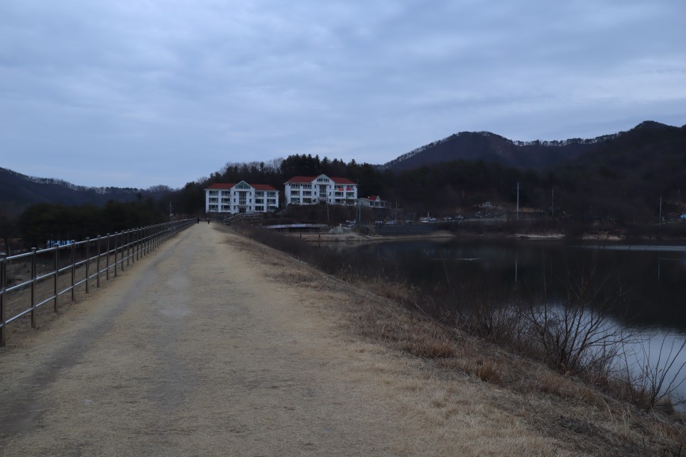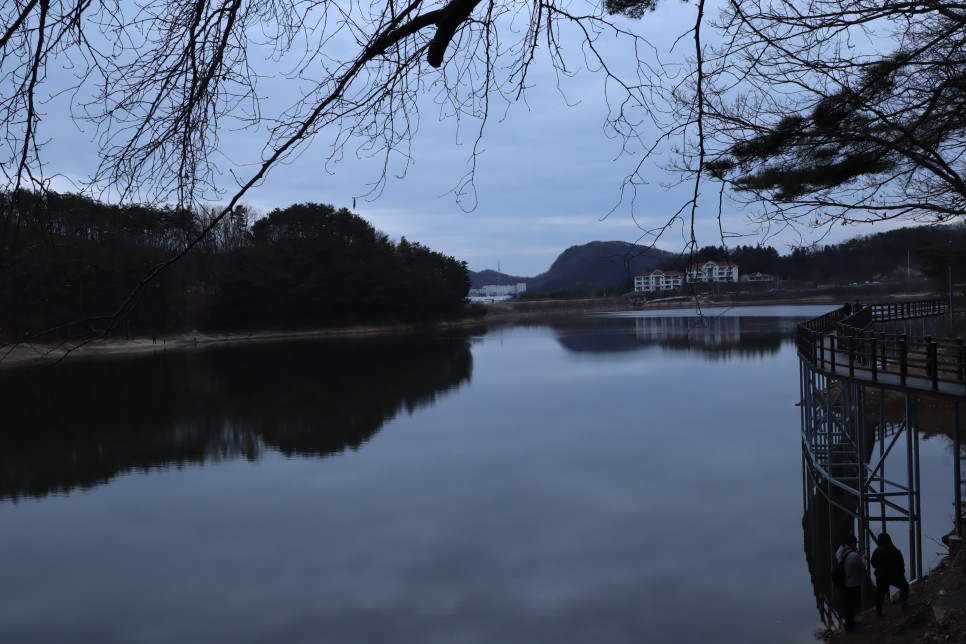 이 천흥저수지에서 가장 풍경이 좋은 곳은 저기 건물들이 보이는 방향입니다. 하얀색의 건물벽 색 때문인지 보기가 좋았습니다.