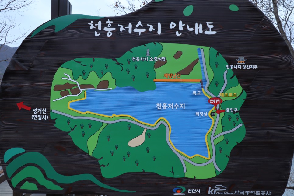 천흥저수지가 있는 곳은 성거산이 있는 곳인데 이곳은 고려 태조 왕건의 후삼국 통일의 기운이 서려 있는 곳이라고 합니다. 태조 왕건이 후백제와 국경을 이루는 천안 일대를 여러 번 찾았는데 직산 수혈리를 지나면서 천흥저수지 산 쪽을 바라보며 '산 정상을 오색구름이 감싸고 있는 걸 볼 때 성인이 사는 산'이라며 성거산이라고 지었다고 하네요.