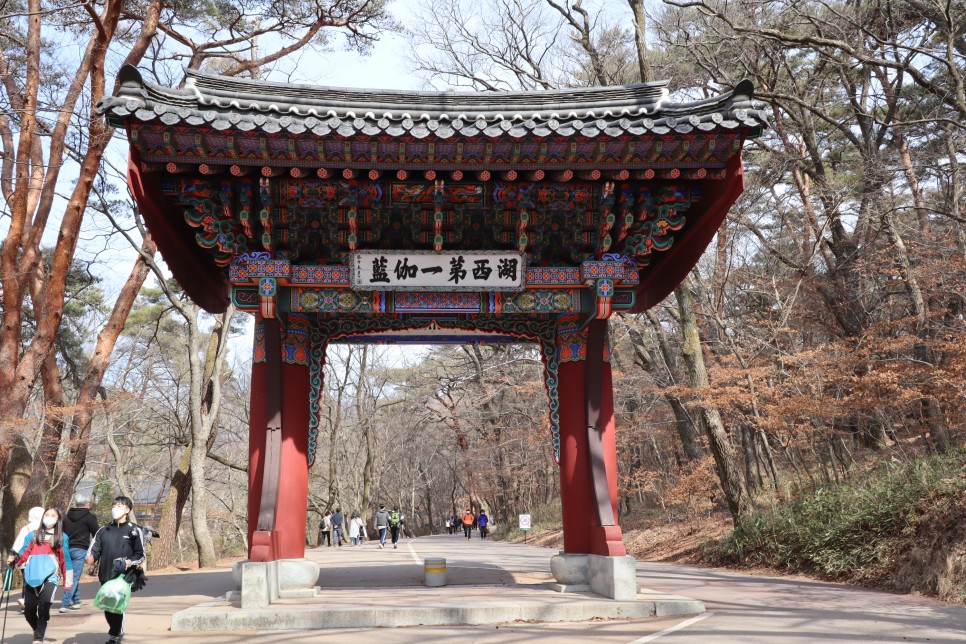 이제 일주문이 나타납니다. 일주문은 모든 중생들이 자유롭게 드나들라는 의미로 문짝도 없고 일자의 기둥을 세워놓은 문이지요.