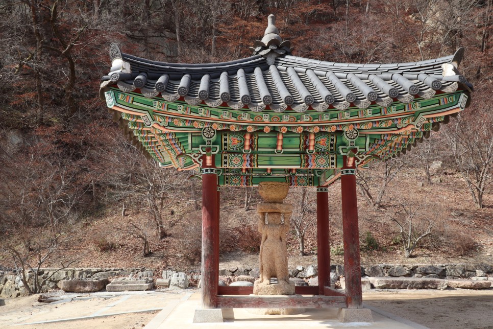 그리고 팔상전 뒤에도 석등이 보이는데 이 석등은 쌍사자 석등으로 국보 제5호라고 합니다. 신라 성덕왕 19년에 조성된 것으로 추정을 하는데 신라시대 석조예술품 중 뛰어난 걸작으로 평가를 받는다고 합니다.