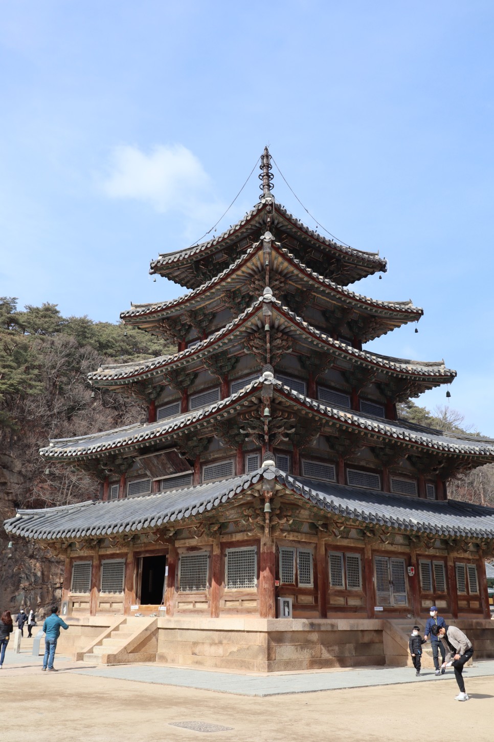 팔상전은 우리나라에서 현존하는 유일한 목탑으로 신라의 승려 의신이 이 절을 창건한 시기에 만들어진 것이라고 합니다. 정유재란 때 소실된 것을 1602년 사명대사와 벽암대사에 의해 복원이 되었다지요.