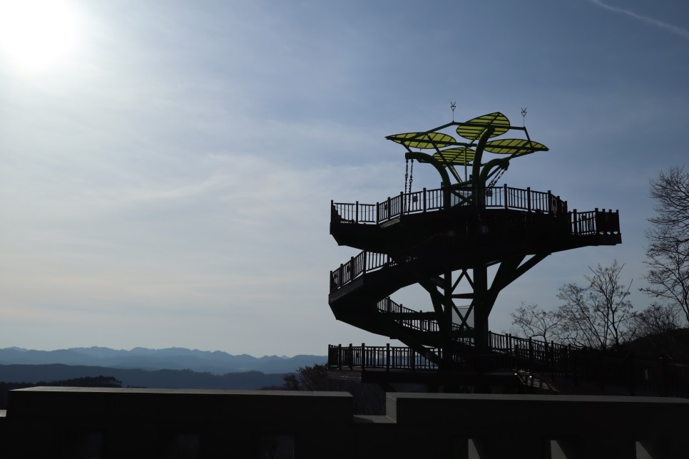 전망대 맨 위쪽에 나뭇잎 같은 조형물이 보이는데 햇빛을 받아서 연한 초록색으로 보이니 보기에도 좋았습니다.