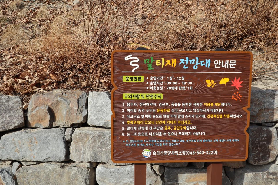 전망대로 올라가는 길에 이 안내문이 보입니다. 말티재 백두대간 속리산 관문 안내라는 것인데 2017년에 속리산 말티재 부근을 관광지로 만든 것을 기념하는 비석인 모양입니다.