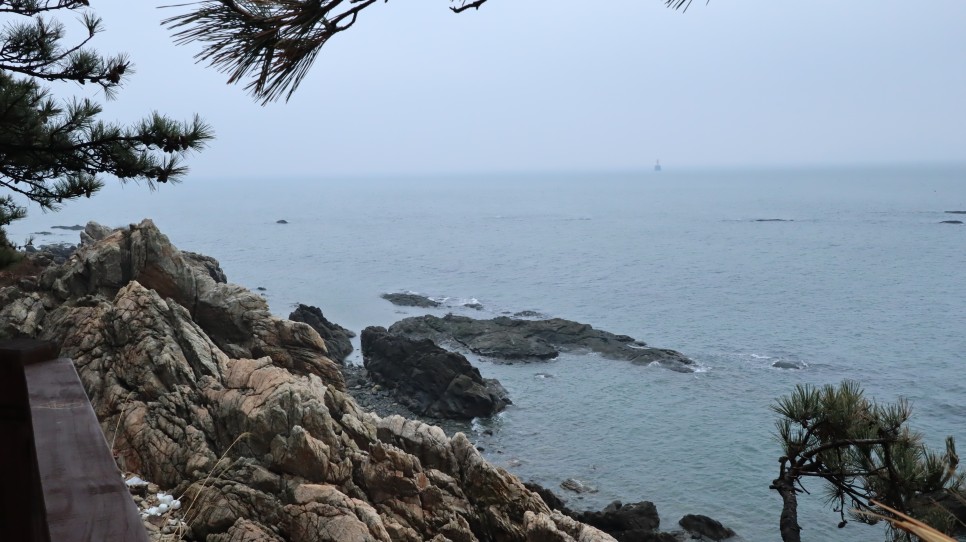 동백정 앞에서 주위에 보이는 바다를 찍어도 봅니다. 비가 오락가락하는 날이라 풍경은 그렇게 좋지는 않는 것 같아요.