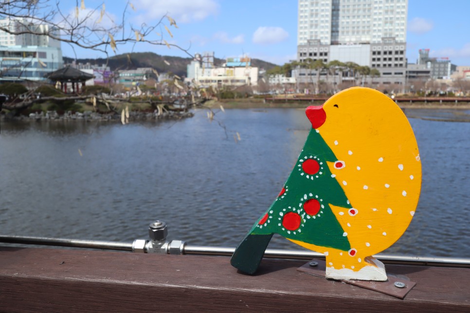여기는 출발지의 반대편에 있는 바닥분수로 가는 길인데 작은 다리가 있어서 그 위에 앙증맞은 조형물들이 있어서 찍은 사진입니다.