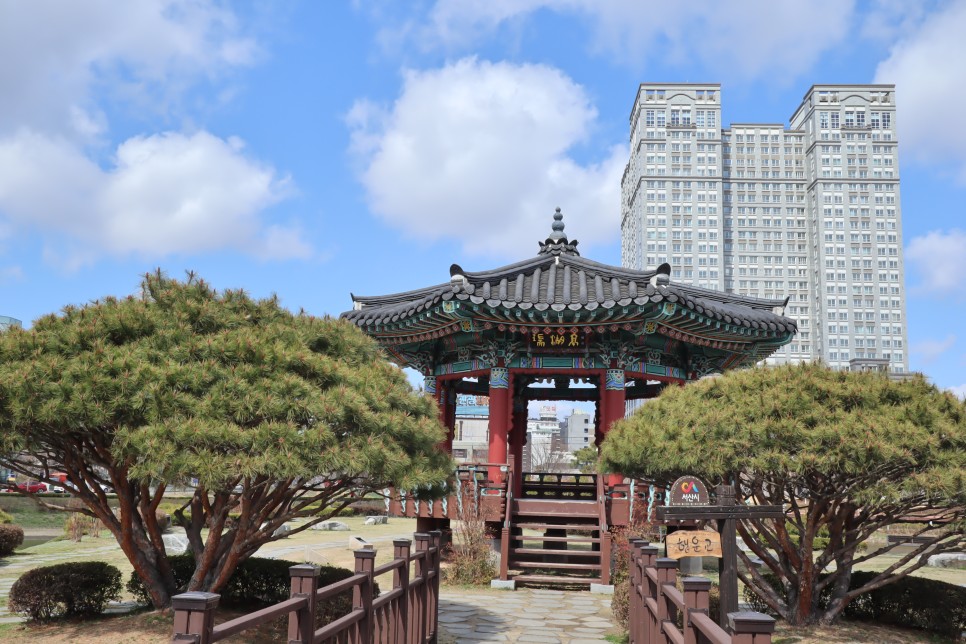 뒤에 있는 큰 건물을 배경으로 정자를 찍어도 보았는데 이런 곳은 어차피 인공적인 아름다움을 보는 곳이니 이렇게 보는 것도 멋진 곳이지요.