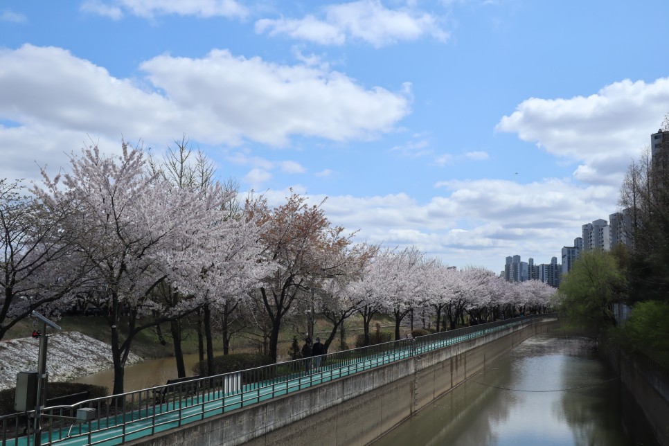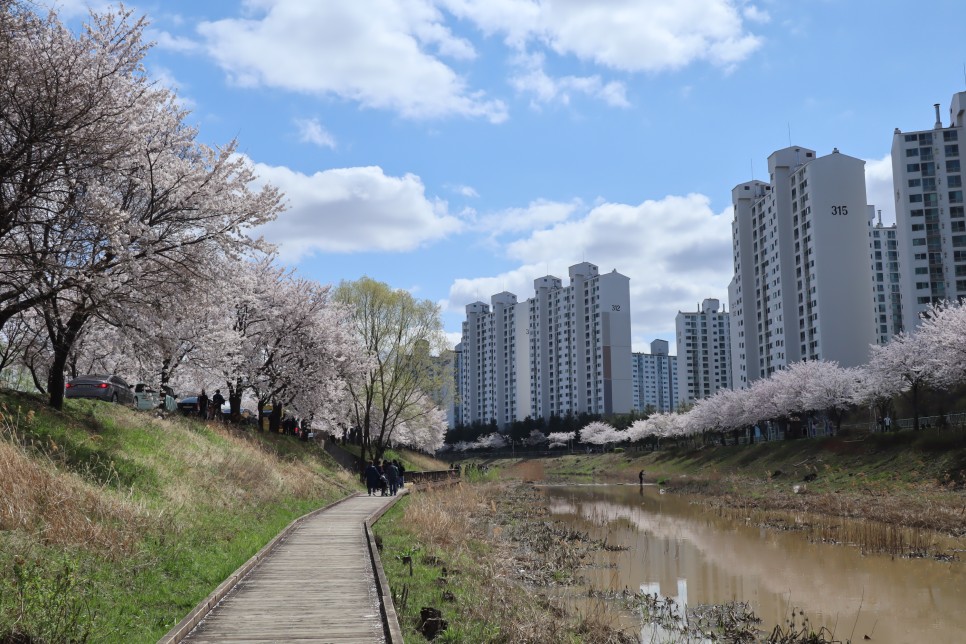 오늘 소개를 해 드릴 곳은 바로 경기도 김포 김포계양천벚꽃축제이지만 올해는 축제를 하지 않았습니다. 저도 이곳은 처음이라 사람이 얼마나 많을지 몰라서 일단 출발을 했지요. 전날 비가 와서 사람들이 많지 않을 것 같았는데 생각보다는 사람들이 꽤 보이더라구요. 잠시 동안 고민을 하다가 빨리 돌고 와야겠다고 마음을 먹고 조심해서 구경을 시작했습니다. 주차는 원래 축제를 하면 주변의 학교 운동장 등을 개방하는 데 축제를 하지 않으니 별도의 주차장은 보이지가 않아 주변의 갓길들을 이용해야 합니다. 더구나 계양천이 길기 때문에 위치에 따라 주차가 가능한 곳도 다를 수 있습니다(축제 시는 김포우리병원, 금파초등학교 등을 이용할 수 있음).