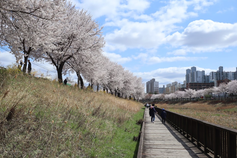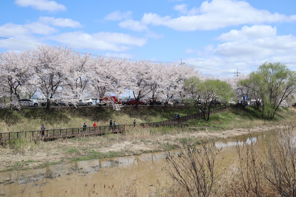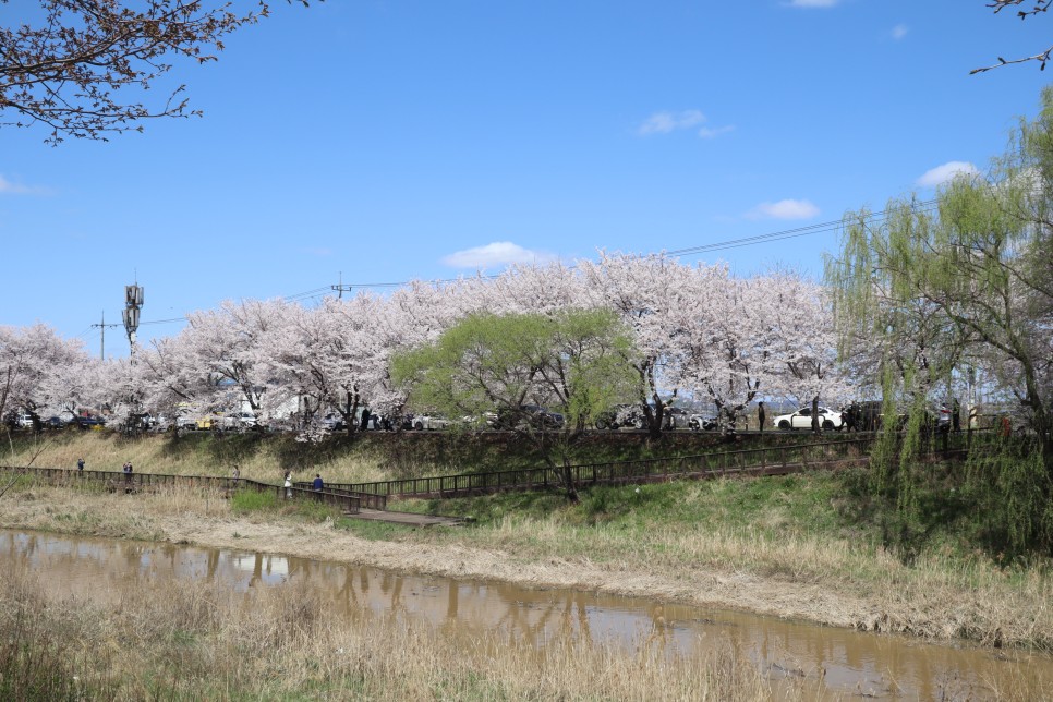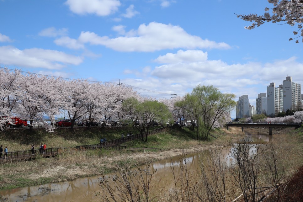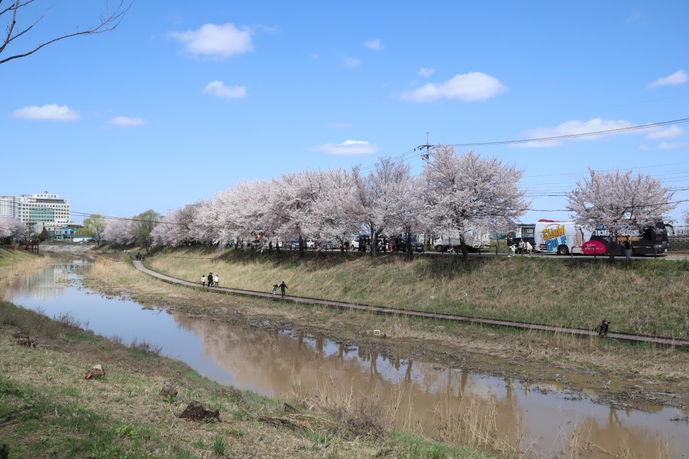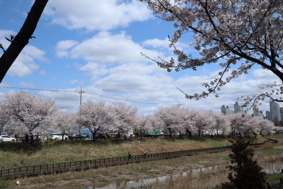 그리고 반대편 계양천 쪽을 보면 이렇게 보입니다. 계양천을 따라 산책로가 있고 그 우측으로 일반 도로가 있는데 사실 벚꽃은 그쪽이 더 좋은 것 같더라구요. 하지만 축제를 하지 않으니 차들이 다니고 있어서 구경하기는 힘이 듭니다.