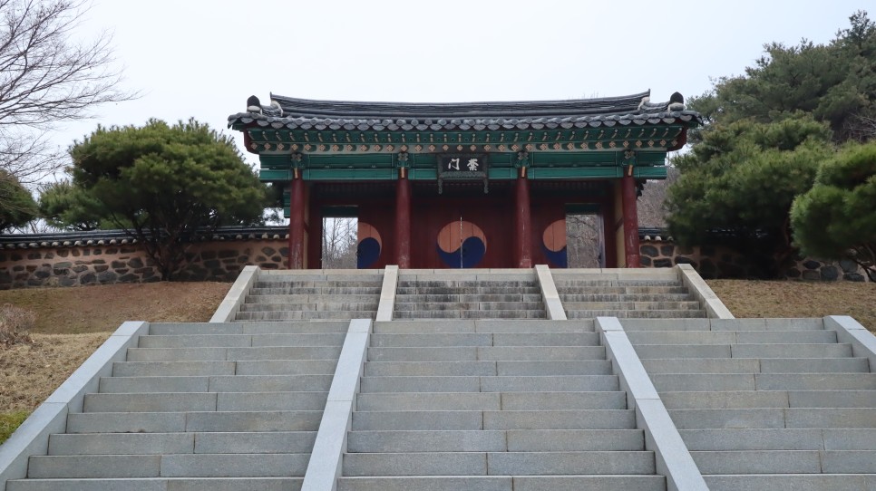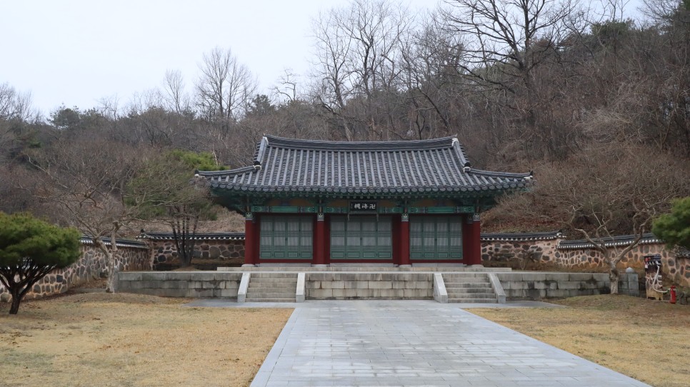 사당을 나서면서 앞으로 보이는 풍경을 찍은 사진입니다. 역시 소나무가 많이 보이는 곳으로 작은 공원처럼 보이기도 하지요.