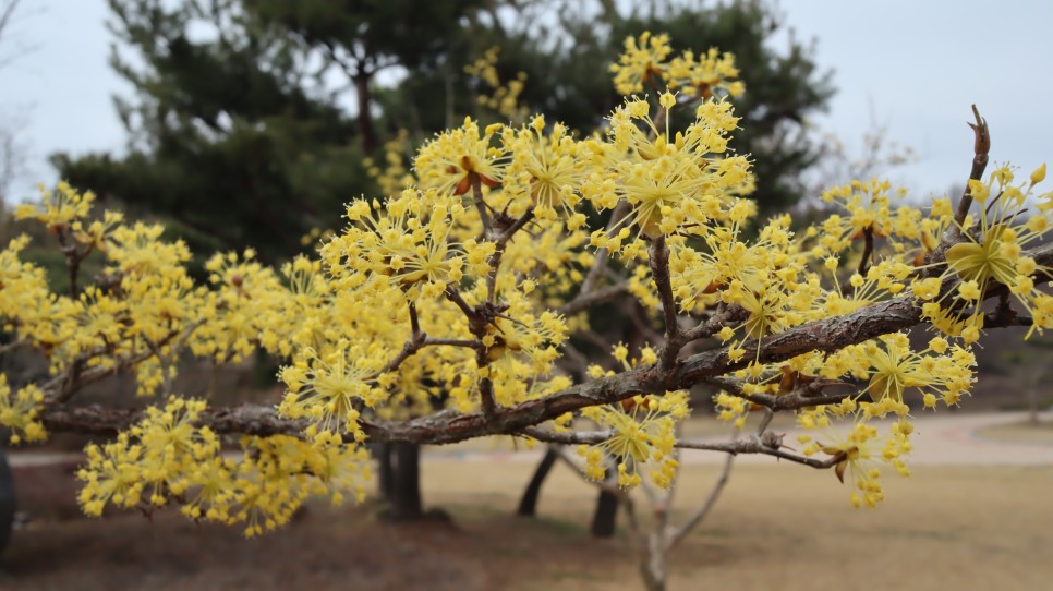 다른 곳에서도 많이 보는 산수유꽃이지만 비가 온 뒤 보는 것이라서 그런지 좀 더 생명이 넘치는 모습인 것 같아요.